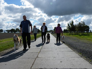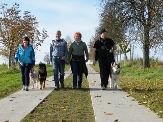 Wir trainieren alle vier weiter denn wir wollen im Dezember mit den Hunden und Elke entspannt über den Weihnachtsmarkt gehen. Da liegt noch viel Arbeit vor uns, aber wir sind optimistisch, dass wir das zusammen mit Elke schaffen. Wir würden uns jedenfalls freuen, wenn wir uns beim Gruppentraining mit Elke demnächst sehen.